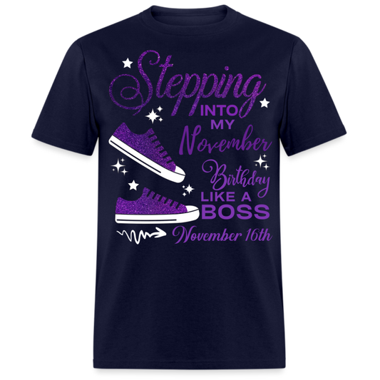 STEPPING INTO NOVEMBER 16 BIRTHDAY UNISEX SHIRT