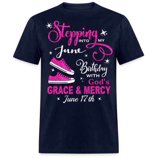 STEPPING INTO MY 17 JUNE BIRTHDAY UNISEX SHIRT