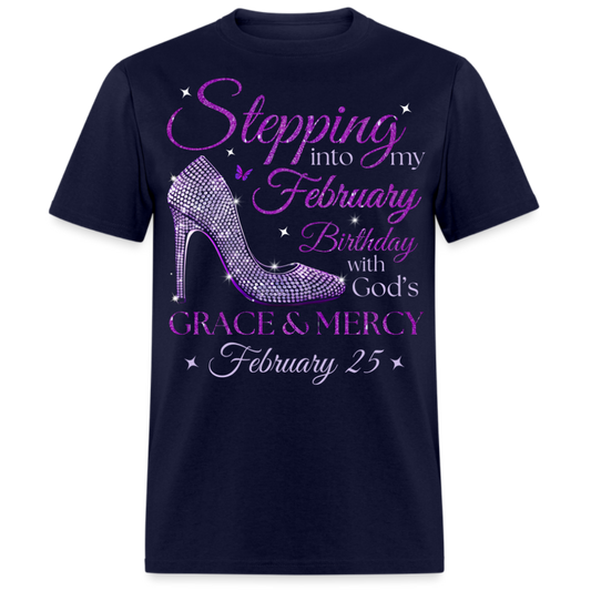 PURPLE STEPPING INTO MY FEBRUARY 25 BDAY WITH GOD'S GRACE UNISEX SHIRT