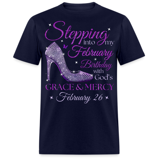 PURPLE STEPPING INTO MY FEBRUARY 26 BDAY WITH GOD'S GRACE UNISEX SHIRT