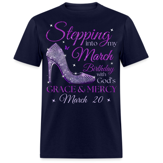 PURPLE STEPPING INTO MY MARCH 20 BDAY WITH GOD'S GRACE UNISEX SHIRT