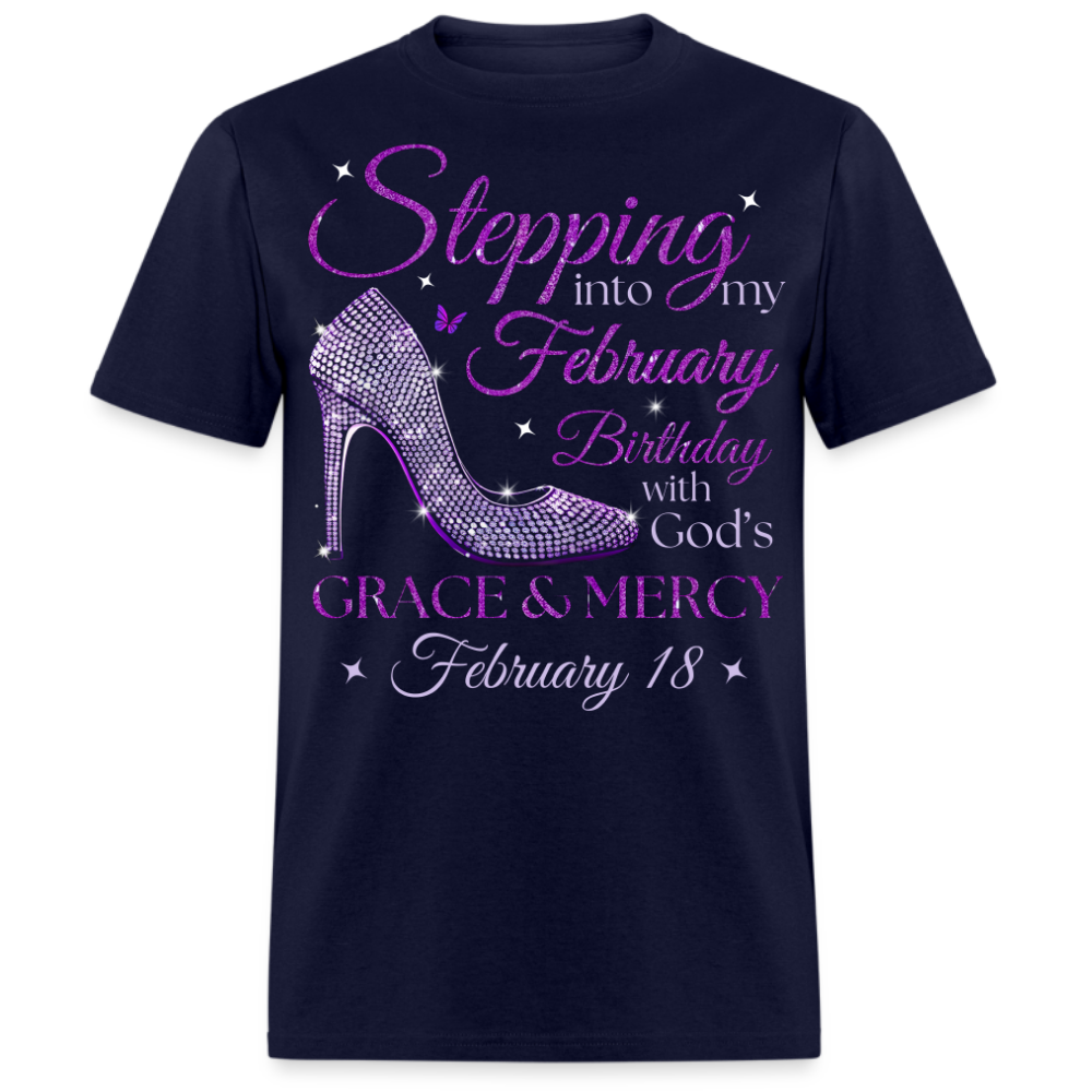 PURPLE STEPPING INTO MY FEBRUARY 18 BDAY WITH GOD'S GRACE UNISEX SHIRT