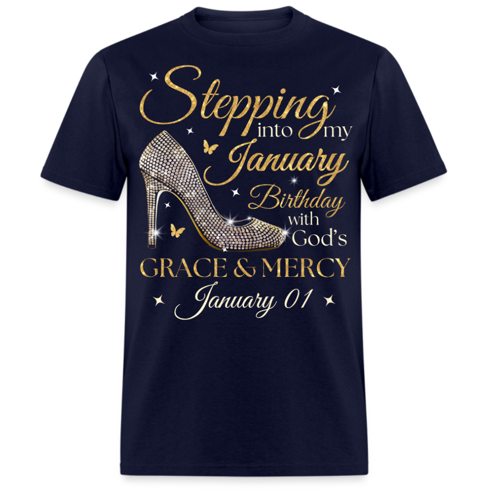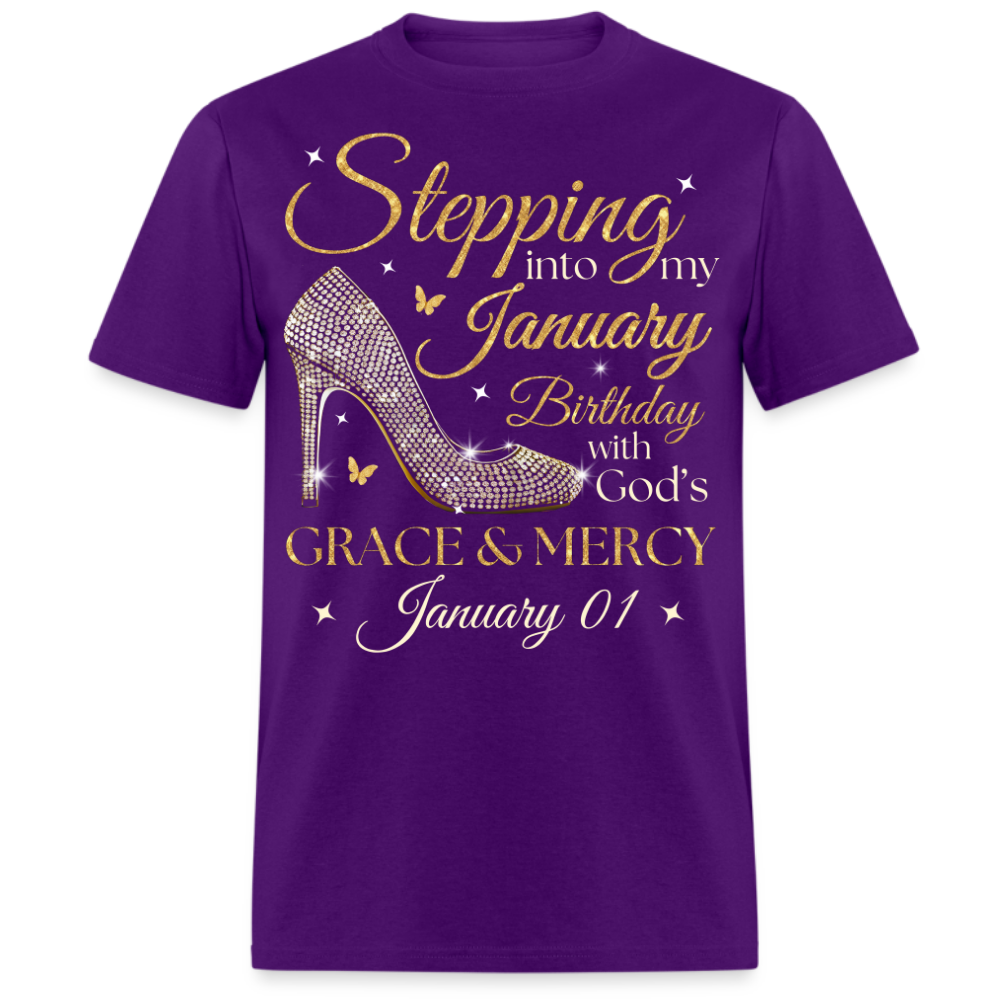 STEPPING INTO MY JANUARY 01 BDAY UNISEX SHIRT