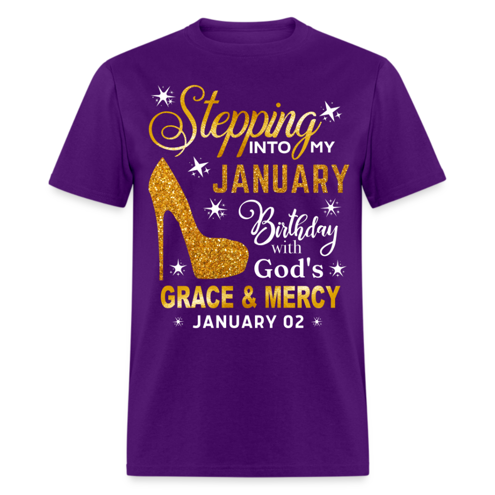 STEPPING INTO MY JANUARY 02 BIRTHDAY UNISEX SHIRT