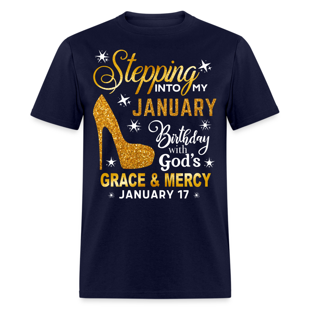 STEPPING INTO MY JANUARY 17 BIRTHDAY UNISEX SHIRT